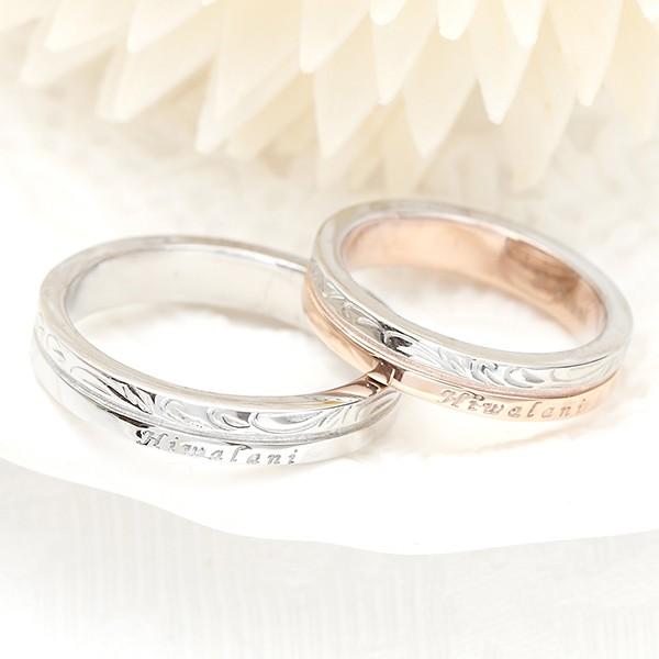 ハワイアンパームス ジュエリー 14kピンクゴールド 3mm幅と14kホワイトゴールド 4mm幅 フラット ペアリング 写真と同じ2点セット ヘリテイジスクロール プルメリア 手彫りオーダーメイドハワイアンジュエリー リング フルオーダーメイド ペアリング 結婚