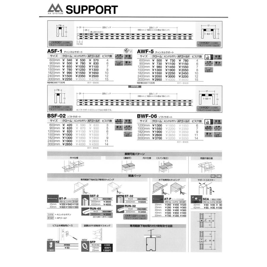 ロイヤル Asf 1 チャンネルサポート 立ち上がり11mm サイズ 600mm 900mm 1200mm 1500mm クローム Aニッケルサテン Aホワイト Apゴールド塗装 金物ショップタケダ 建具金物 店舗金物 家具金物 スライドレール 引戸クローザー スライド丁番通販