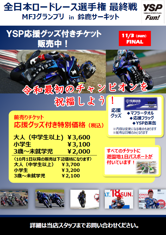 11 3全日本ロードレース最終戦 鈴鹿大会のオプションチケットが販売されます Ysp天白 バイク屋さんのつぶやき日記