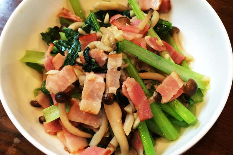 小松菜としめじとベーコンのガーリック炒め レシピ 作り方 By Mayu Kko クックパッド