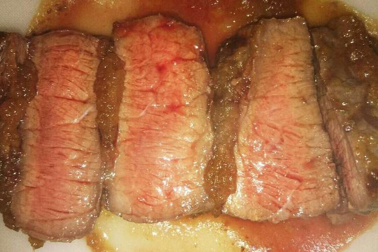 塊肉 牛モモ肉の厚切りシャリアピンステーキ レシピ 作り方 By Love Meats 楽天レシピ