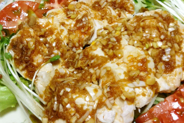 鶏むね肉で蒸し鶏 ピリ辛ネギソース レシピ 作り方 By k k クックパッド